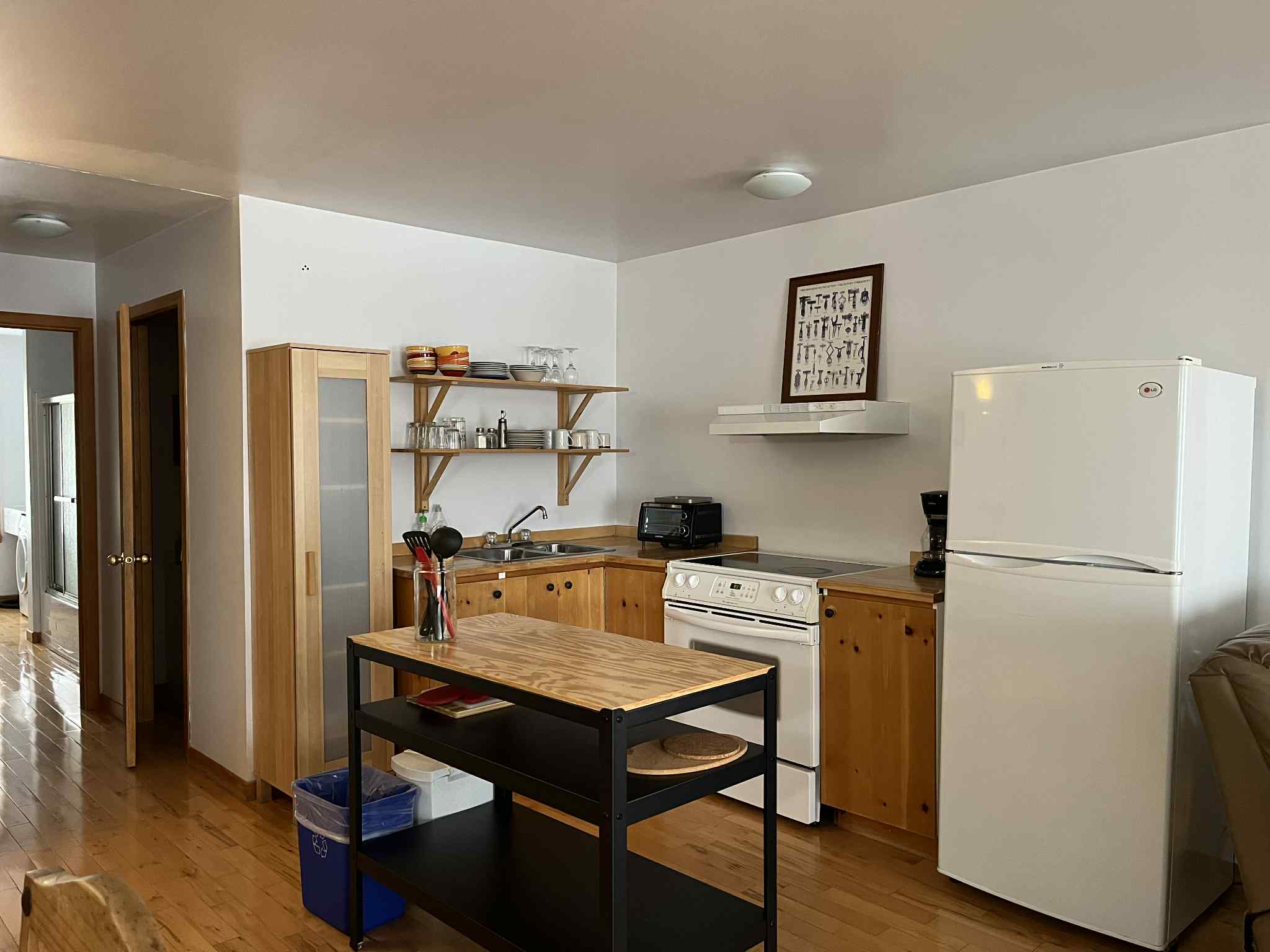 - Cuisine équipée (cuisinière, réfrigérateur/congélateur,